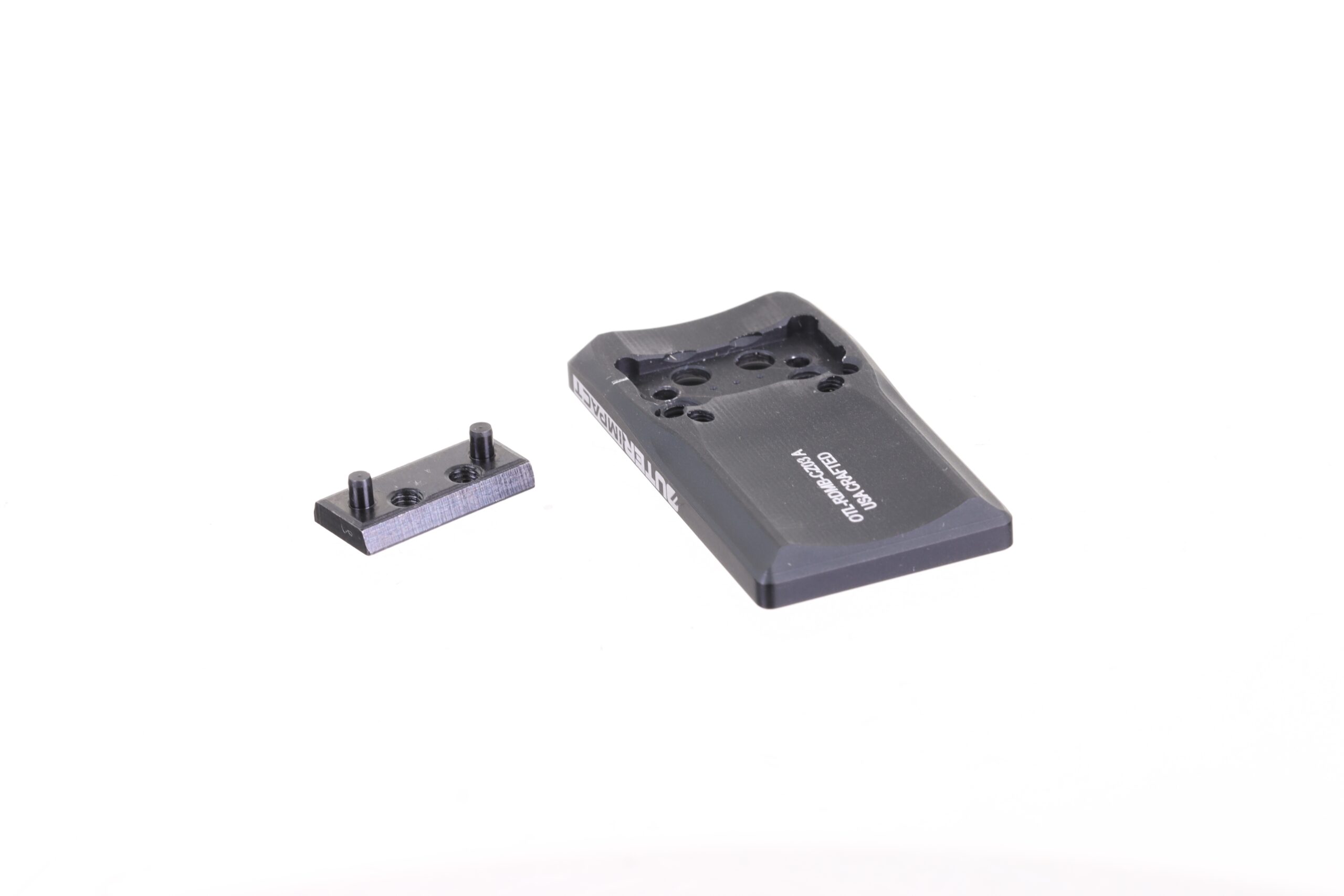 The OuterImpact M.R.A. for the CZ P-09 Pistol answers all the above questions. We precision-machined the adapter plate from 7075 aircraft aluminum. Thus, the M.R.A. plate is extremely durable and lightweight. As you know, there are violent forces that take place when a gun is fired. We know that shooters do not want to “worry” about losing zero, because of an inferior mount. This is why we utilize weaver T-10 Torx screws and steel alignment pins to keep everything aligned and in place.